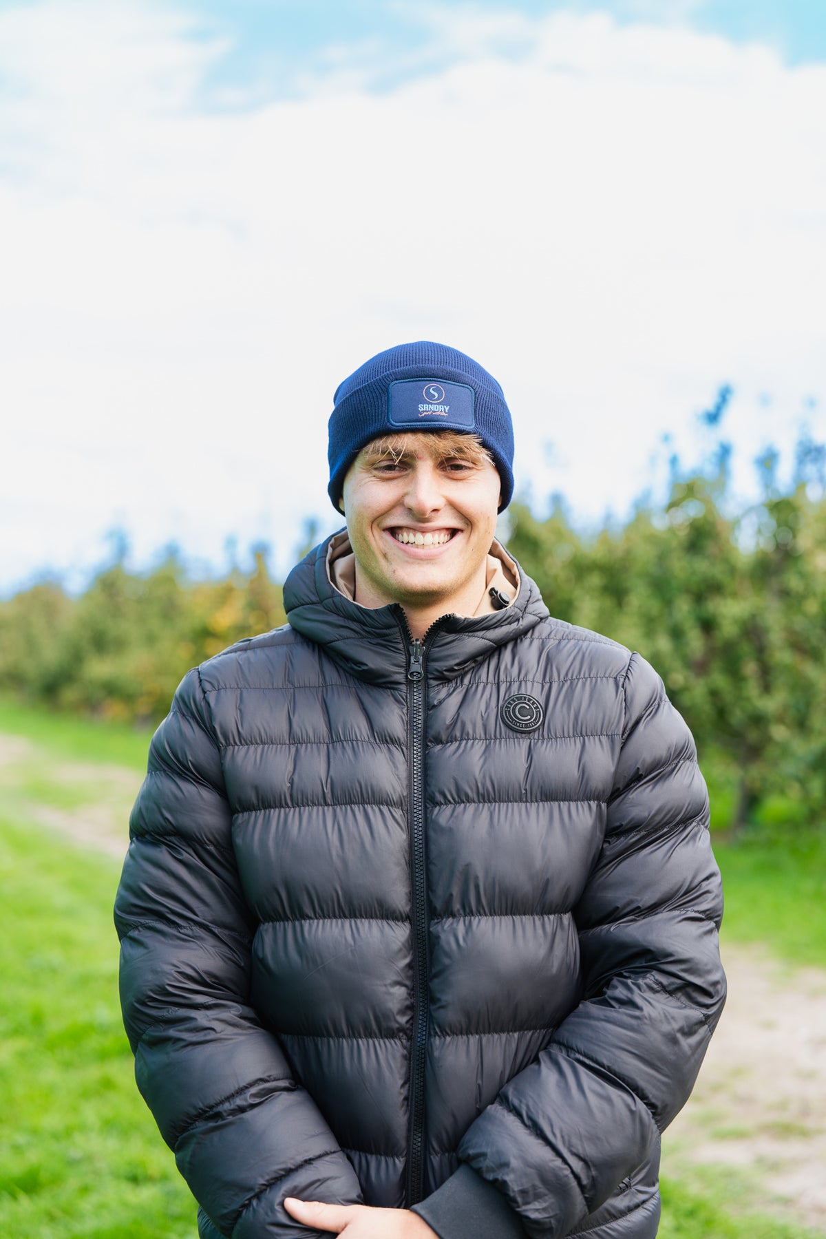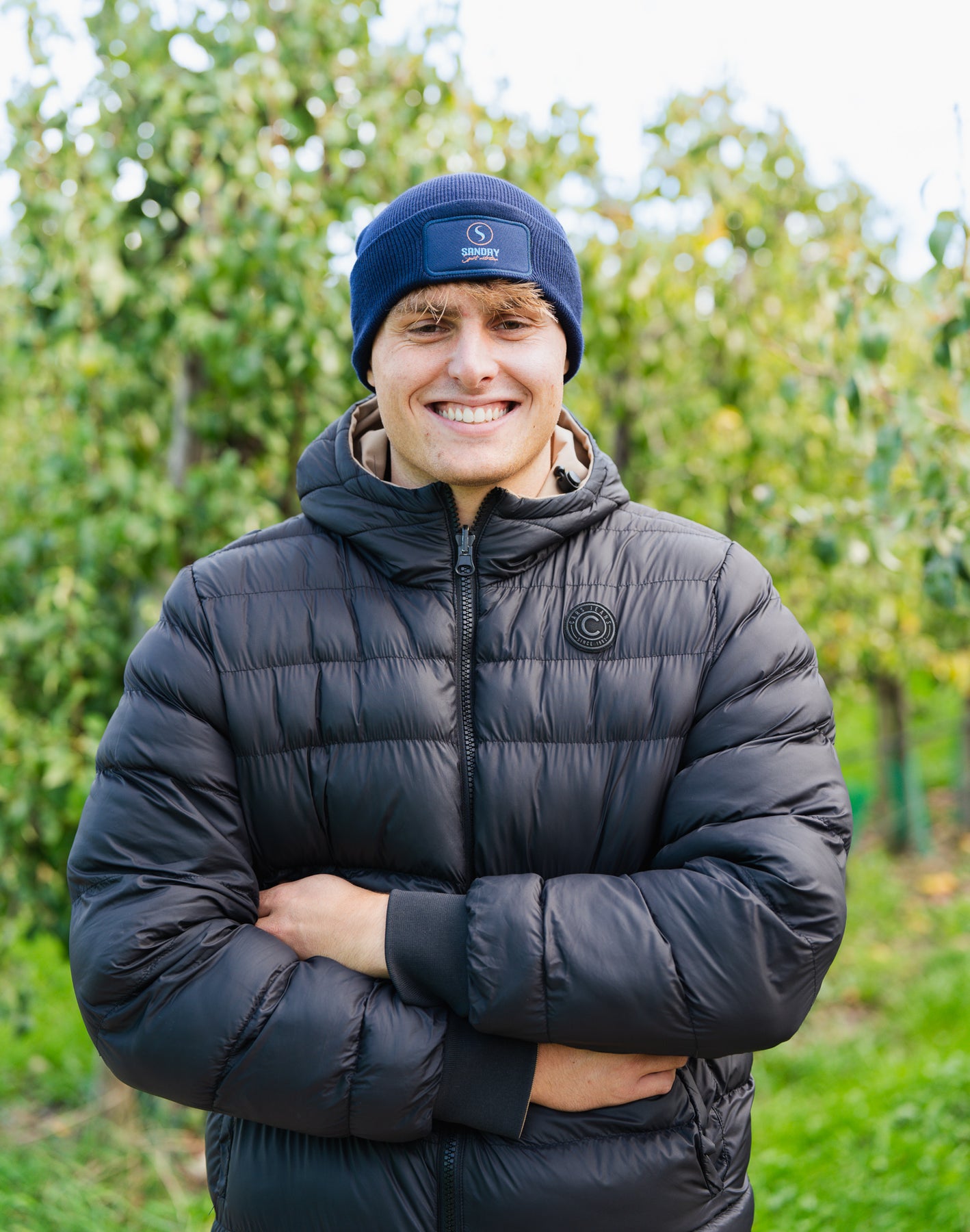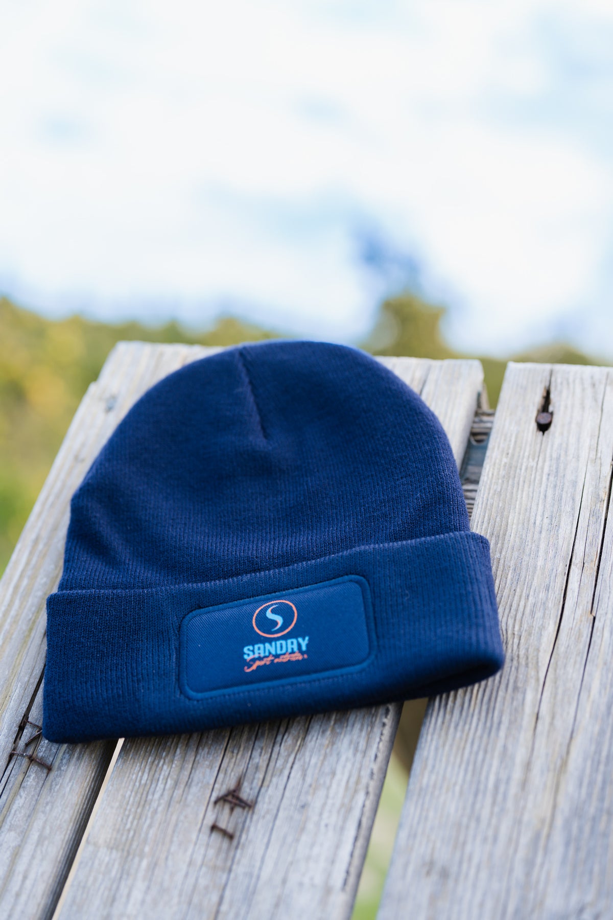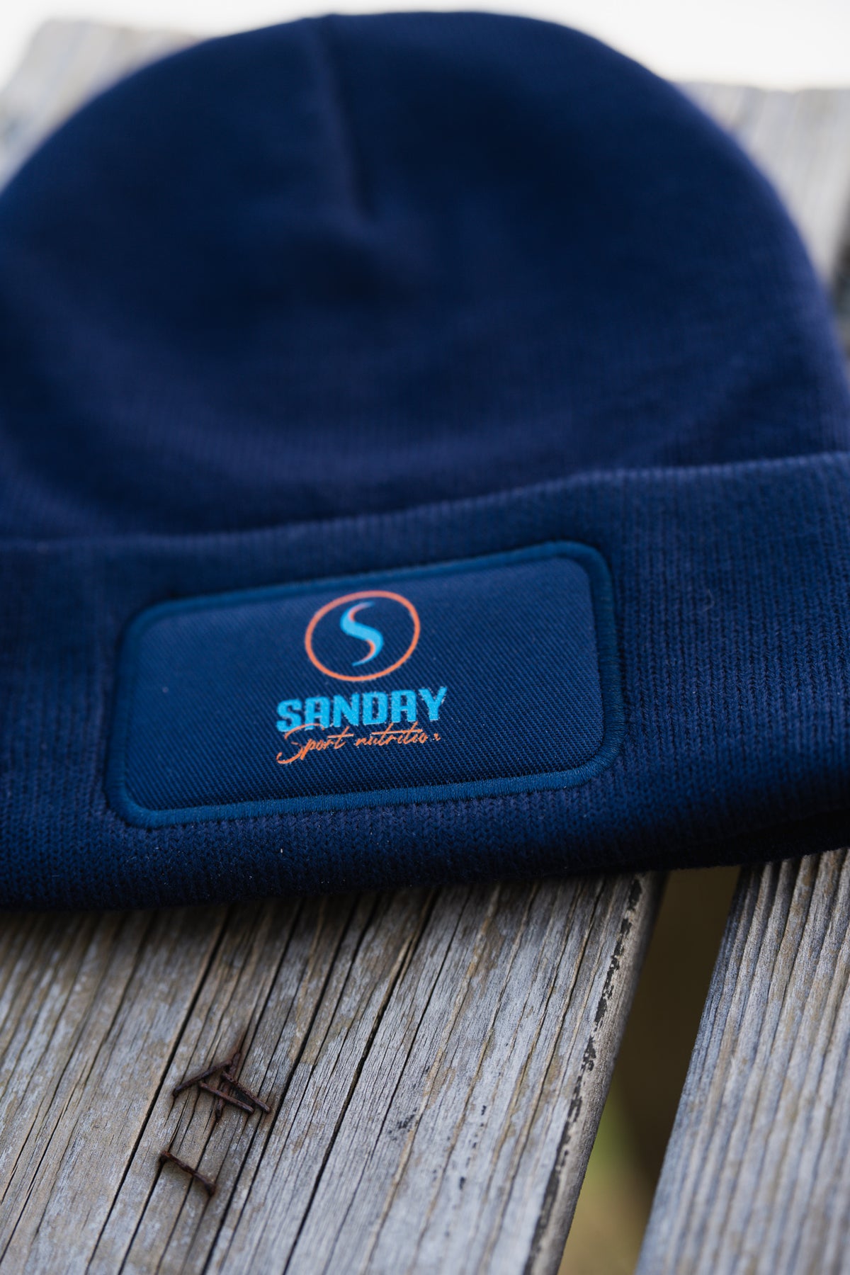 De muts is donkerblauw van kleur en heeft het logo van Sanday op de voorzijde.